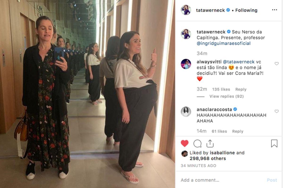 Tatá Werneck compartilhou nesta sexta-feira, 27 de setembro, em seu Instagram uma foto com a amiga Ingrid Guimarães e, mostrando o tamanho da sua barriga na reta final da gravidez. Aliás, ela também respondeu nos comentários o fã clube que perguntou o nome da sua filha. E, com certeza, a foto e a resposta nos deixaram ansiosas para a chegada da herdeira!