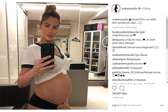 Nós estamos sempre de olho no Instagram das mães e filhos famosos. Na tarde da última terça-feira (3) a modelo Andressa Suita usou sua página para mostrar aos seus seguidores sua barriga de 8 meses. Na legenda, ela escreveu “Tem um bebê bem grande por aqui”.