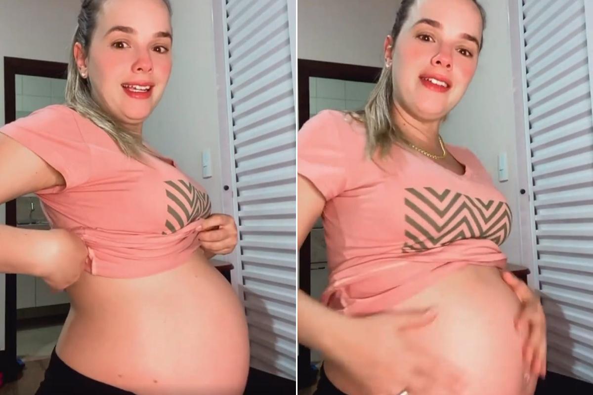 Ela surpreendeu mostrando o tamanho da barriga. “Barrigão! Gente, muito grande, né? Fala sério. Enorme, mesmo. O cuidado tem que ser redobrado. O incômodo que sinto é bem aqui, fico o dia inteiro passando a mão”, começou ela, falando sobre alguns incômodos físicos durante a gestação.