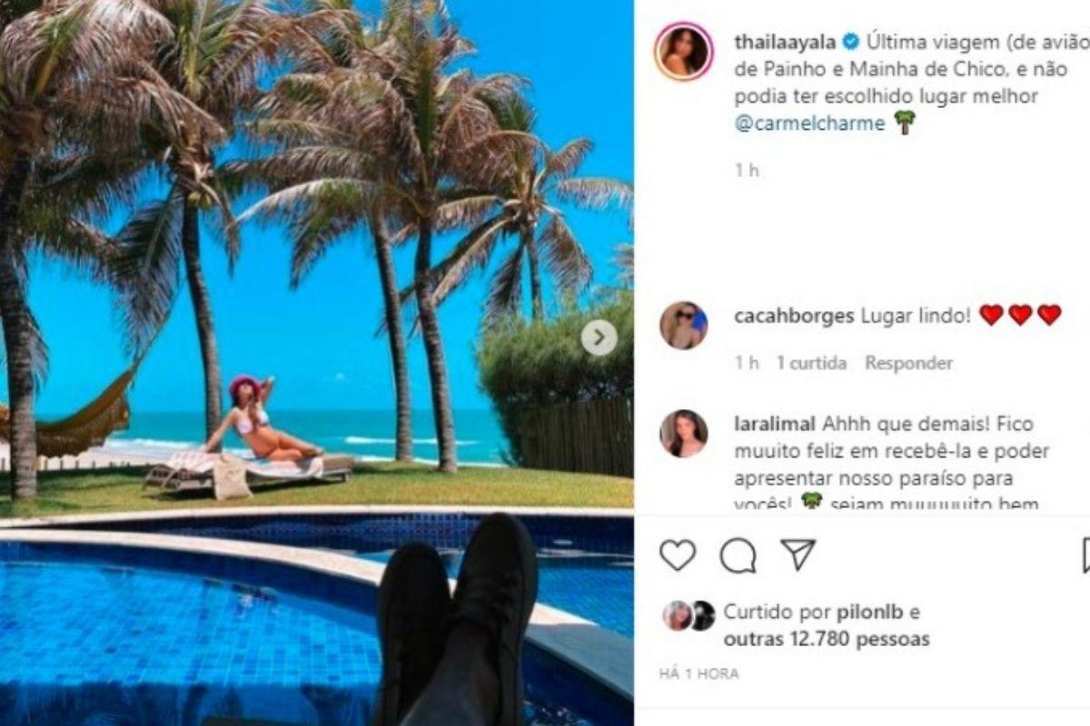 O casal decidiu aproveitar as paisagens de Fortaleza e estão mostrando tudo nas redes sociais. A atriz postou uma foto diante de uma bela vista, e aproveitou para mostrar a linda barriga de grávida. “Última viagem (de avião) de Painho e Mainha de Chico, e não podia ter escolhido lugar melhor”, escreveu na legenda