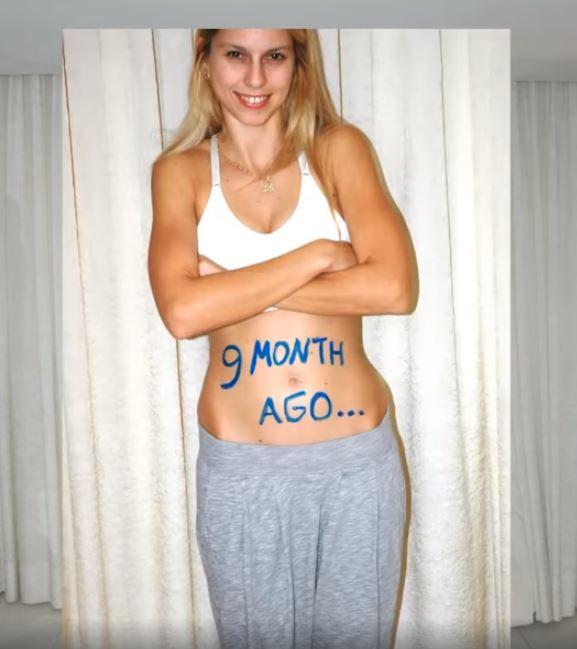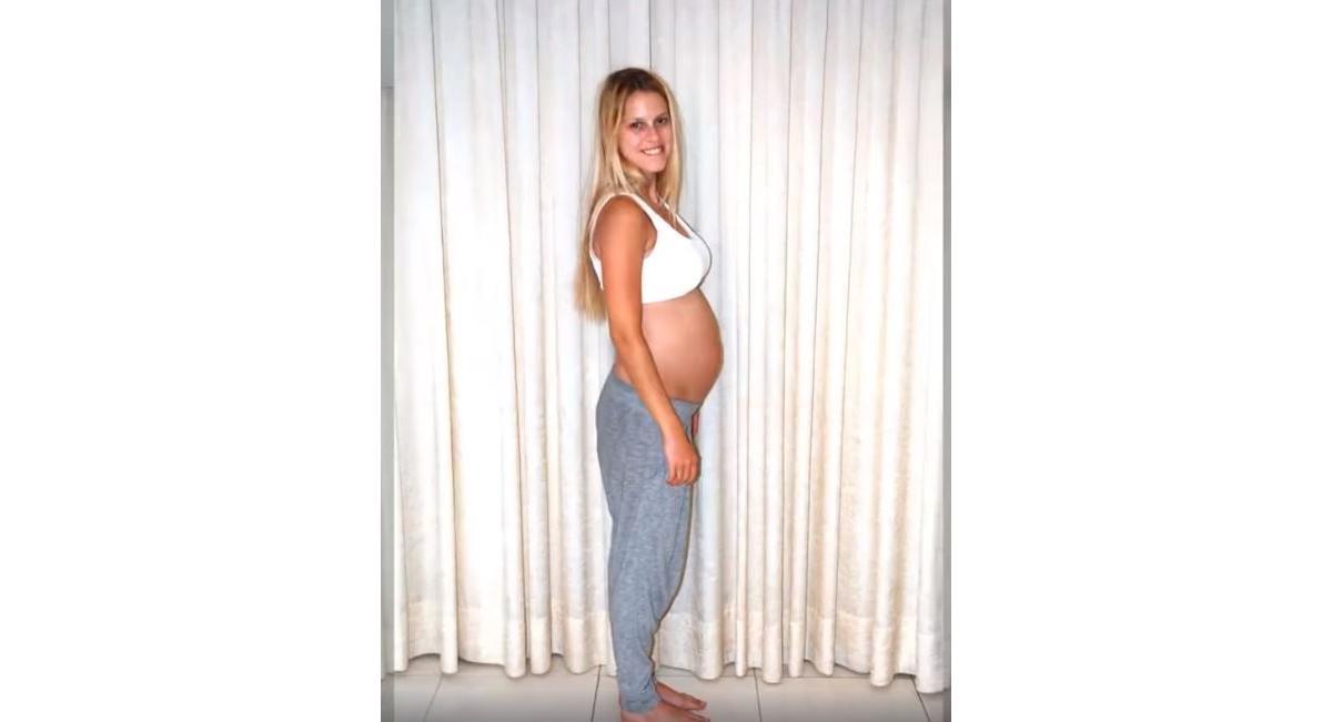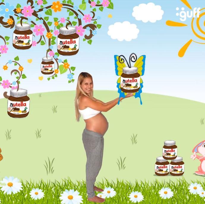 No vídeo, ela também coloca fotos com coisas comuns que acontecem na gravidez, como o enjoo, quando ela aparece com um balde, e o desejo, quando ela “sonha” que está em um campo cheio de Nutella.