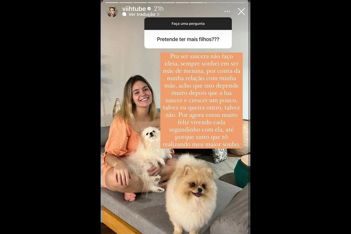 A influenciadora foi questionada se gostaria de ser mãe mais vezes após o nascimento de sua primeira filha, Lua: “Pra ser sincera, não faço ideia, sempre sonhei em ser mãe de menina, por conta da minha relação com a minha mãe, acho que isso depende muito depois da Lua nascer e crescer um pouco, talvez eu queira outro, talvez não. Por agora estou muito feliz vivendo cada segundinho com ela, até porque estou realizando meu maior sonho”, ela respondeu direta.