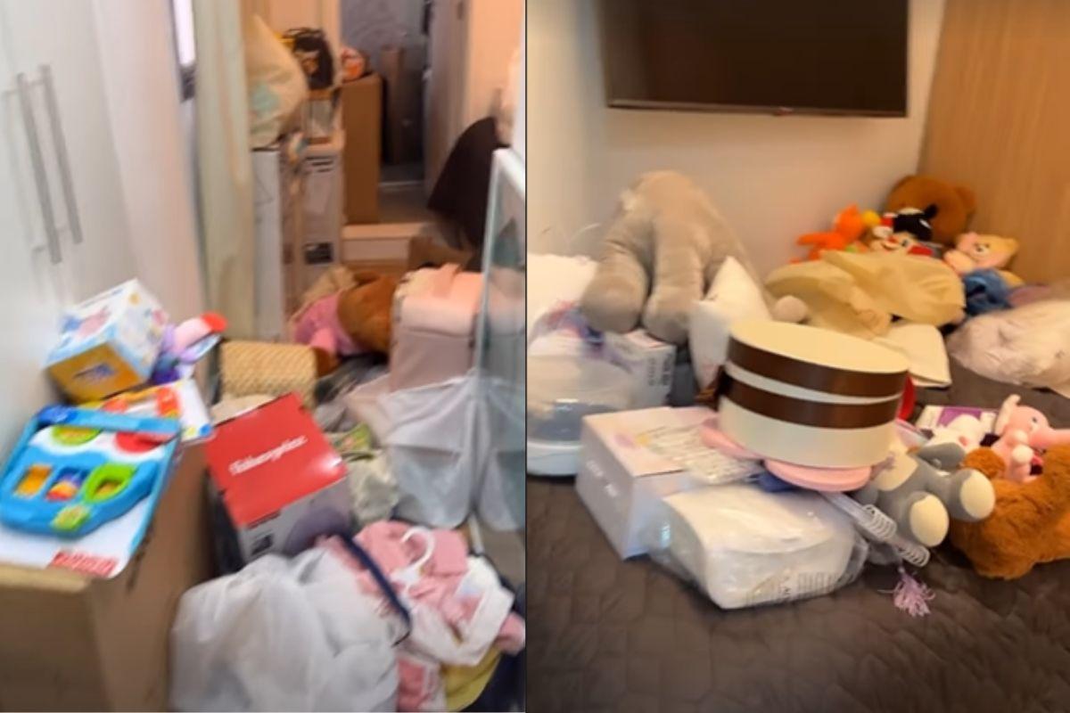 A mãe de primeira viagem começou o vídeo falando sobre a quantidade de coisas da filha: “Quero mostrar para vocês a função que eu estou aqui hoje, de organizar as coisas da Lua. Está tudo uma bagunça, olha isso aqui gente. Não fui inteligente, o Eli está viajando e eu devia ter esperado ele voltar para me ajudar, mas eu fiquei empolgada. Não sei o que dá em mim que eu quero fazer tudo, e estou organizando todas as coisas”.