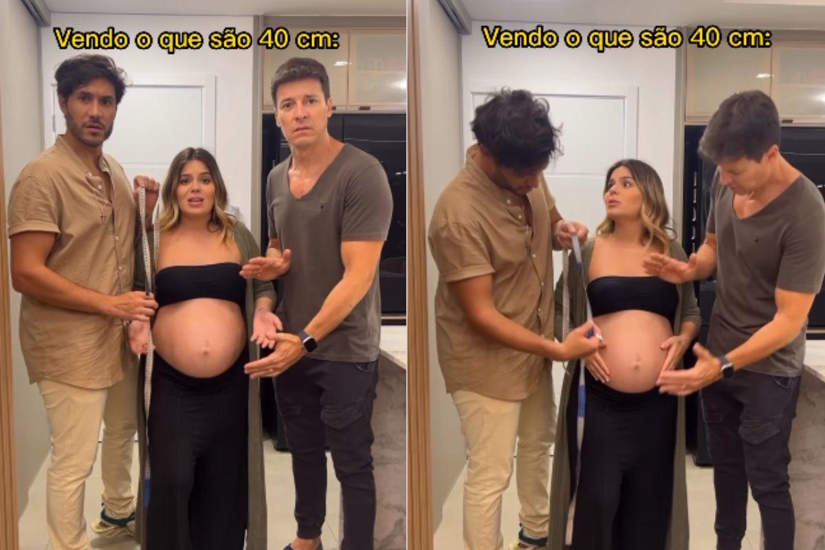 Ela está à espera de uma menina, que se chamará Lua.No vídeo Eliezer aparece com uma fita métrica e conta que a barriga de Viih Tube já está medindo 40 cm. ‘’E agora? Entrou vai ter que sair KKKK’’, escreveu a futura mãe na legenda da publicação.
