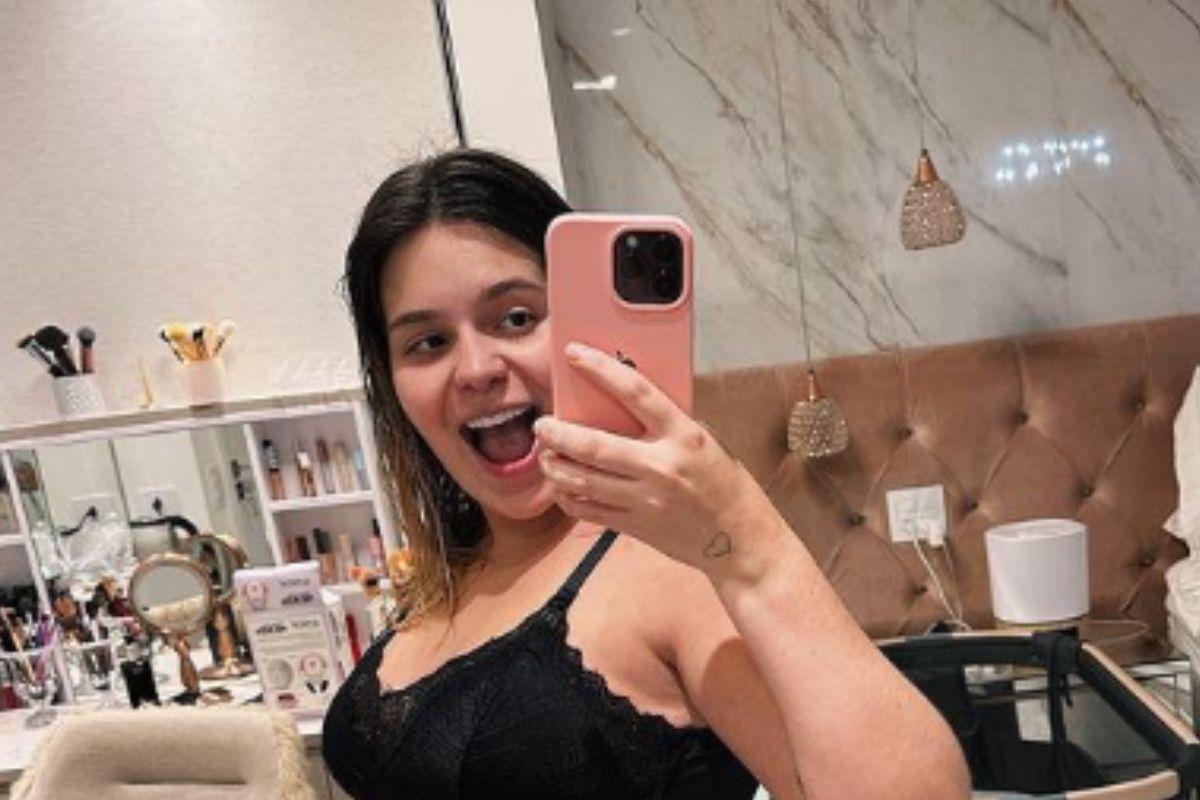 Em uma publicação realizada no feed do Instagram ela fez uma brincadeira com a demora da chegada da filha. Nas imagens ela aparece em uma selfie em frente ao espelho exibindo o barrigão, usando apenas uma lingerie preta.‘’3,5kg e nada de querer sair socorro KKKK’’, escreveu a futura mãe na legenda da publicação.