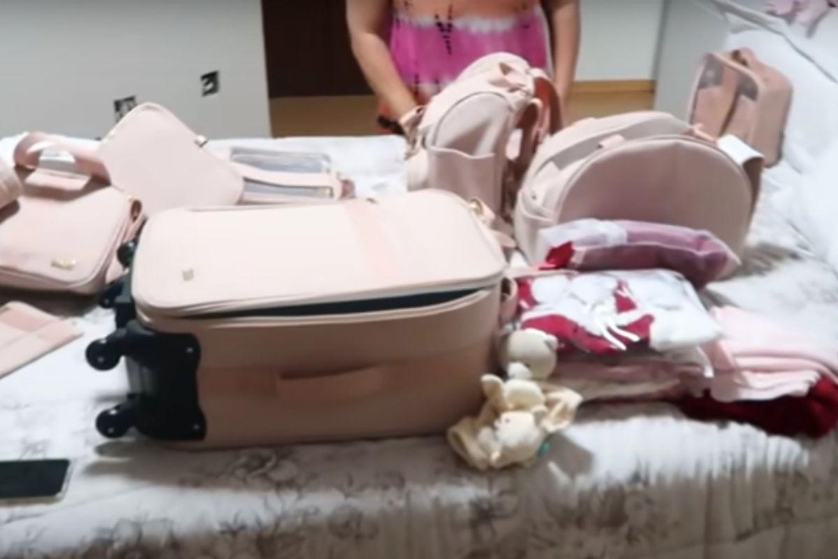Ansiosa para essa tarefa, Virgínia conta que conseguiu aumentar a quantidade de líquido amniótico bebendo água de coco. Com um conjunto todo combinando rosé, ela mostrou as malas vazias, necessaire da Maria Alice e porta-documentos da filha. Em uma mala de mão, a noiva de Zé Felipe mostrou alguns itens de higiene que está levando para a filha.