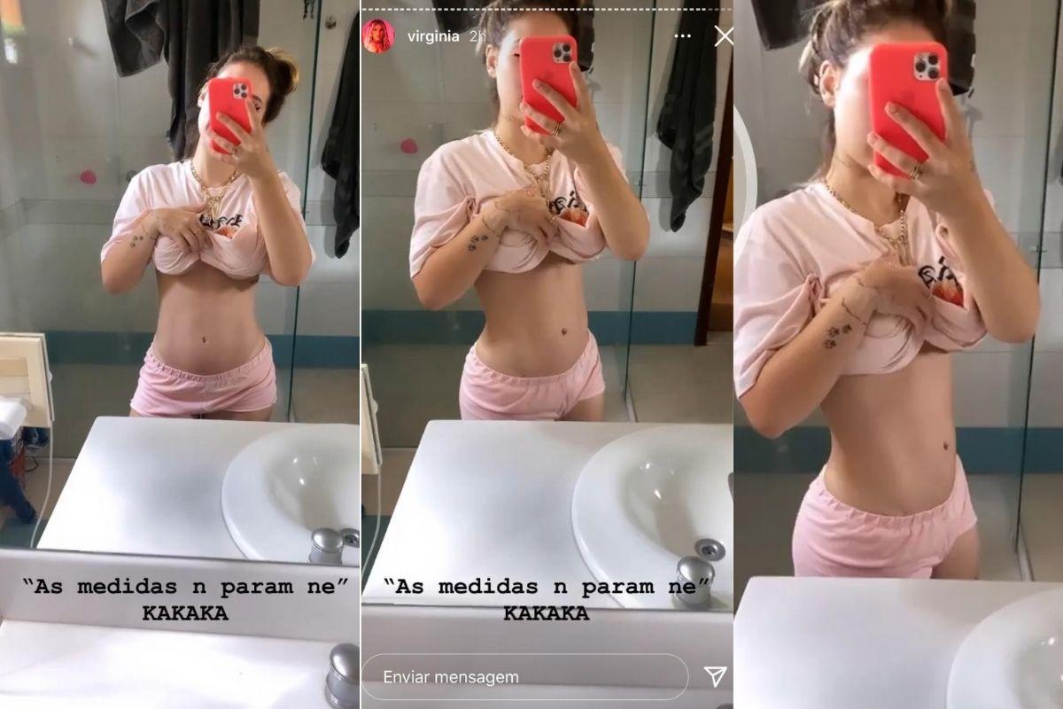 Nos Stories, Virginia contou para os internautas que está emagrecendo na gestação. “Vocês acreditam que minha cintura era 65cm e já está 72cm. Mesmo emagrecendo um quilo, as medidas não param, né?”, contou Virginia. Ela e Zé Felipe, namoram há quase cinco meses e estão noivos.
