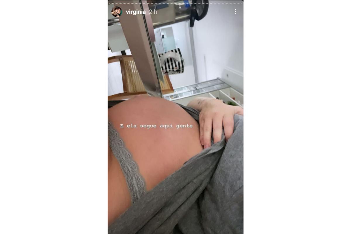 No registro, Virginia declarou, “Ansiedade nível 1000”. Além dele, outra foto foi publicada, em que a mãe de primeira viagem registra os últimos momentos da barriga de grávida e alerta os seguidores, “Ela segue aqui gente”.