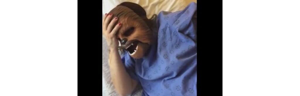 Aquela famosa máscara do Chewbacca, do filme Star Wars, que emite os sons dos personagem já fez muita gente rir! A mãe Katie Stricker Curtis, de Detroit, nos Estados Unidos, no entanto, fez diferente e chamou atenção.