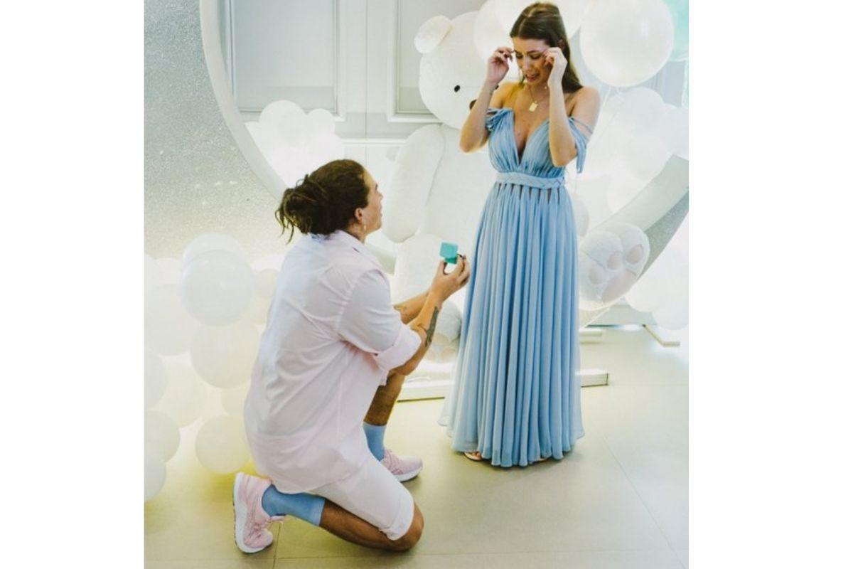 Um pouco antes do anúncio oficial, o avô do bebê contou a notícia em suas redes sociais – mas até o momento, nenhum familiar revelou o nome do bebê. Durante a festa, o humorista se declarou e pediu a namorada e mãe de seu filho, em casamento.