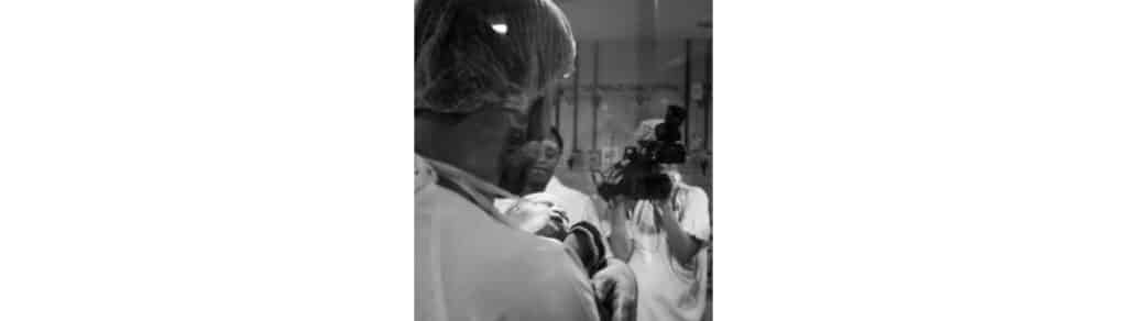 Os pais não estão olhando para as câmeras nem preocupados com elas. Não dá. Tem muita coisa importante acontecendo e, nesse momento é como se o mundo desfocasse e a única imagem nítida fosse a do pai, a da mãe e a do bebê, assim que chegar. Nas cesáreas, os médicos abaixam aquele pano que separa a mãe da cirurgia, para que elas vejam o bebê sair. Geralmente, os pais ficam ao lado delas, e alguns, mais corajosos, observam os procedimentos cirúrgicos. Naquela hora, não é uma cirurgia. É um nascimento.