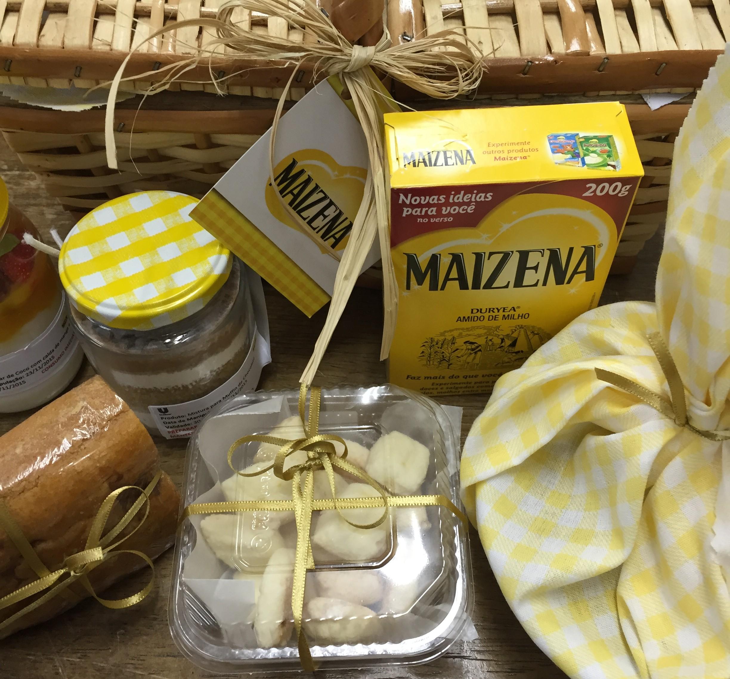 24/11; a Maizena mandou para nós uma cesta cheia de coisas gostosas: pães, sequilhos, bolo no pote… adoramos tudo!