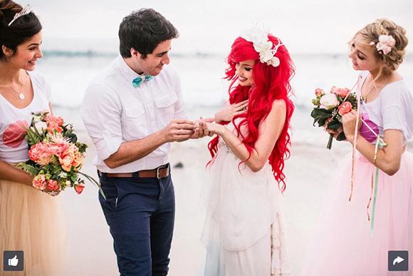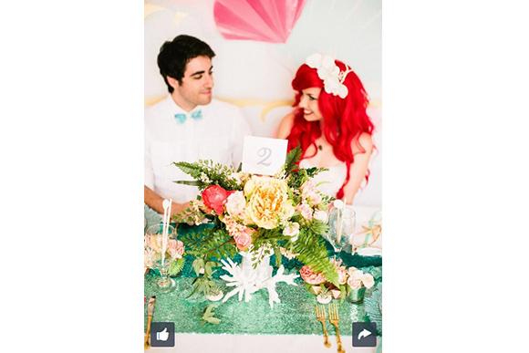 Ariel e príncipe Eric se casaram! Pelo menos a Traci Hines, designer, e a Your Cloud Parade, produtora de casamentos, fizeram de tudo para recriar como o casamento dos personagens seria hoje. O ensaio fotográfico teve todos os detalhes, desde a mesa do bolo até os acessórios das madrinhas, inspirados no filme da Disney A Pequena Sereia e as fotos ficaram incríveis. Você pode até pegar algumas ideias da decoração para um tema de aniversário ou quem sabe do seu próprio casamento. As informações são do site Popsugar. Olha só!
