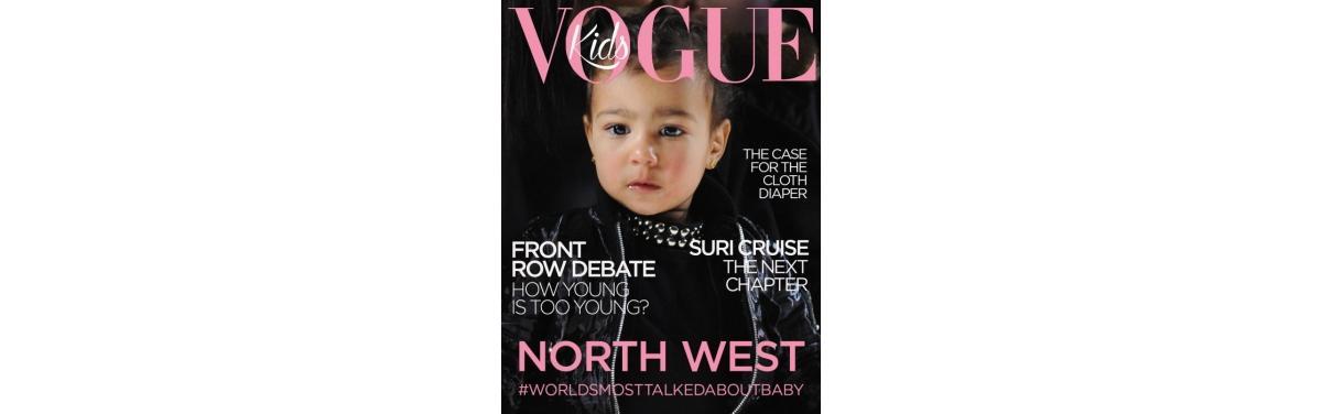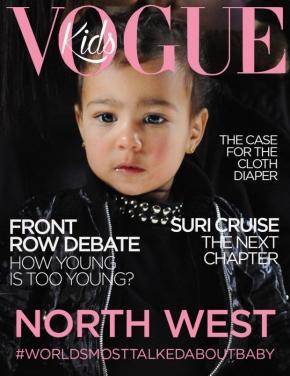 Essa é, provavelmente, a primeira capa de muitas que virão por aí. Em seu ensaio, a bebê aparece na capa da Vogue Kids com look em couro preto e detalhes em taxas prateadas, do estilista Alexander Wang. North West já apareceu várias vezes com esse estilo combinando com a roupa da mãe.