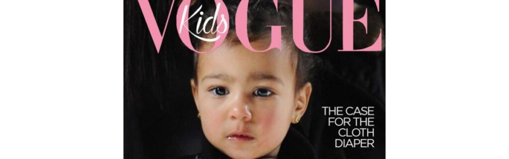 Essa é, provavelmente, a primeira capa de muitas que virão por aí. Em seu ensaio, a bebê aparece na capa da Vogue Kids com look em couro preto e detalhes em taxas prateadas, do estilista Alexander Wang. North West já apareceu várias vezes com esse estilo combinando com a roupa da mãe.