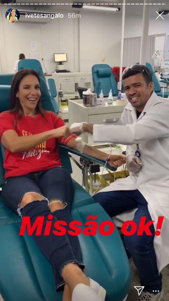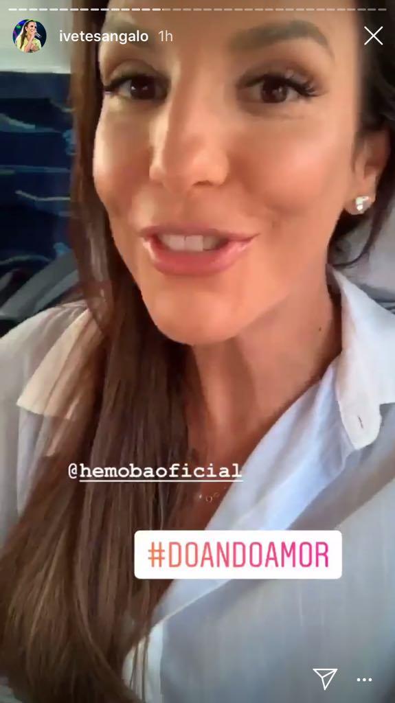 Em seu stories, a cantora divulgou vários vídeos sobre o momento. “Hoje estamos saindo da minha casa e resolvemos ir no Hemoba para fazer uma doação. É maravilhoso a gente poder ajudar”, disse Ivete.