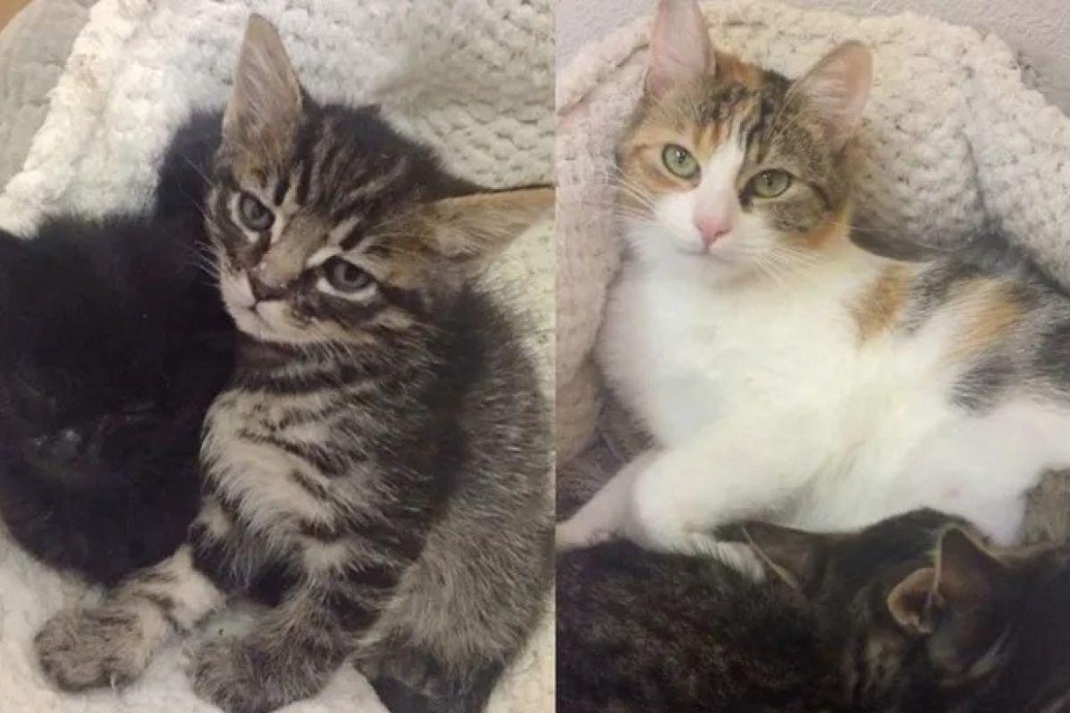 Os gatos estavam cobertos de pulgas e sujeira. “Quando dei banho em cada um, pude sentir seus ossos. Não consigo imaginar como foi a vida deles vivendo na rua” – relembra a mulher. Mas, com ajuda da mãe Primrose, os gatinhos começaram a crescer. Eles ganharam muito peso saudável e muita força.