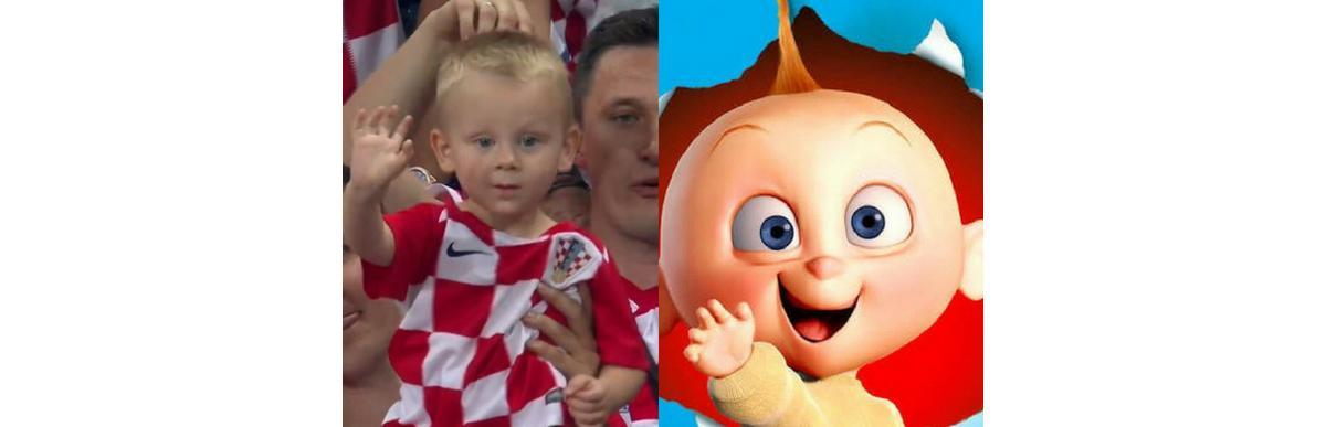 O menino é filho do croata Domagoj Vida e fez sucesso após aparecer em campo, mas não só pela sua fofura. De cara, a Internet reconheceu semelhanças entre o menino e o personagem Zezé do filme Os Incríveis. E não é que eles se parecem mesmo? Na hora já surgiram vários tweets sobre o assunto e a gente amou a comparação.