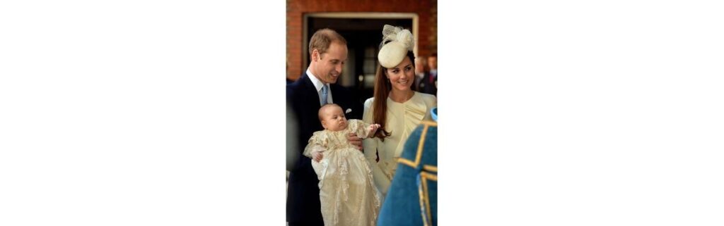 A roupa do batismo do príncipe George, feira de rendas e cetim branco é uma réplica do vestido criado para a filha mais velha da rainha imperatriz Victoria, a princesa Victoria. O vestido original foi usado por mais de 60 bebês da família real e foi usado pela última vez em 2004. Para preservar o verdadeiro, a réplica foi criada a pedido da rainha Elizabeth II em 2008 e já foi usado em outros batismos reais.