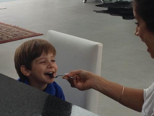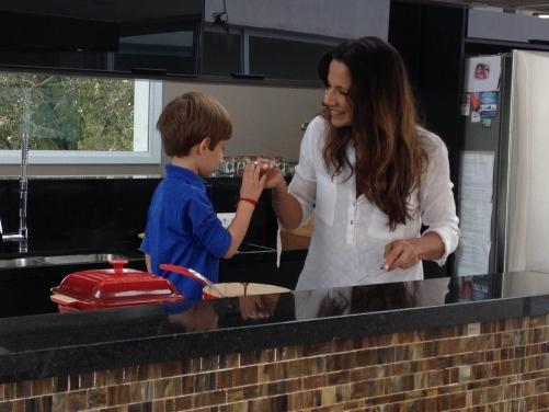 Depois, foi pro fogão com ele, terminou de preparar o almoço, montou seu truque especial e… voilà! Ele comeu tudo.