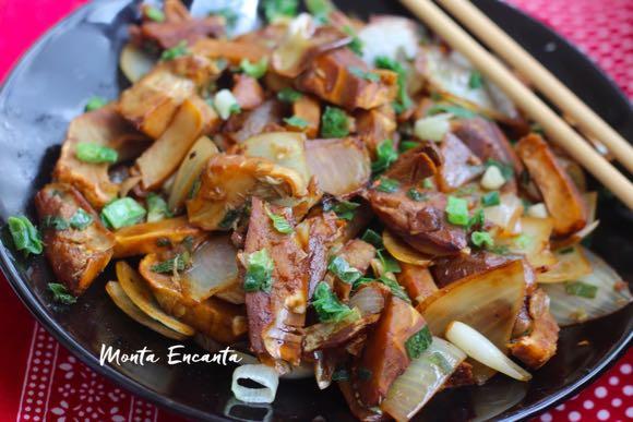 Fundo de alcachofra com toque oriental e molho shoyo. Bem gostoso, low carb e mais saudável, além de fácil de fazer. Basta saltear a alcachofra na frigideira, com cebola e cebolinha e em 5 minutos está pronto para servir. Vamos lá?