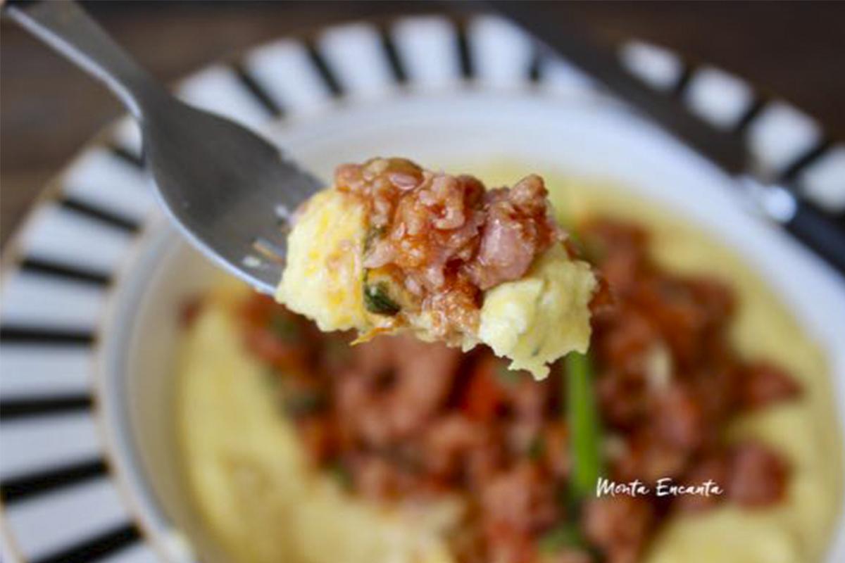 COMO FAZER POLENTA DE COLHER COM LINGUIÇA