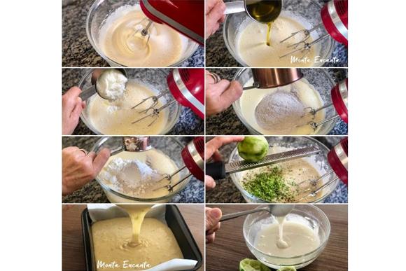 6. Junte 1 xícara de chá de farinha de arroz, 1/2 xícara de chá de amido de milho (maisena), 1 colher de sobremesa de essência de baunilha e as raspas do limão. Misture delicadamente até incorporar.
