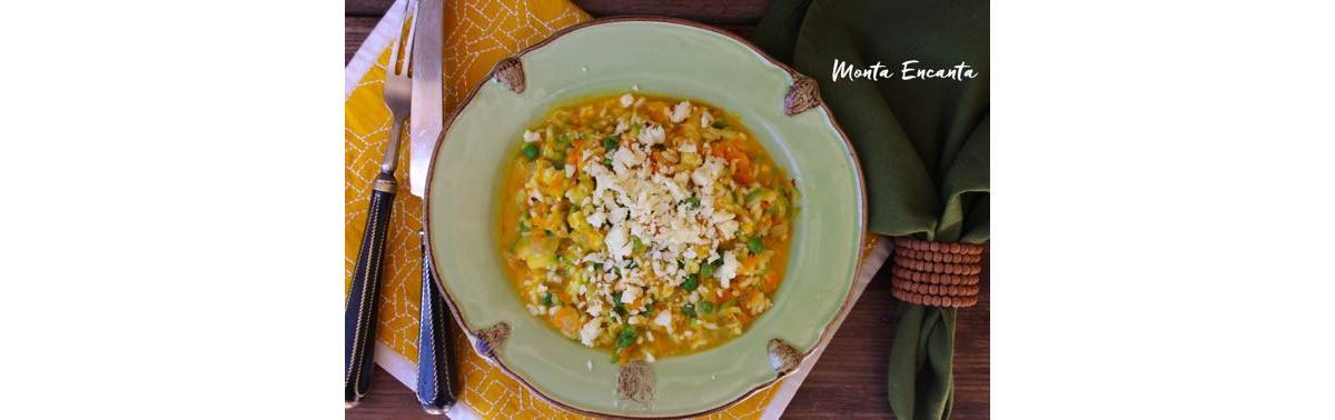 O caldo deste risoto é feito junto e ao mesmo tempo que o arroz, refeição completa e pronta entre 15 e 20 minutos, no máximo.