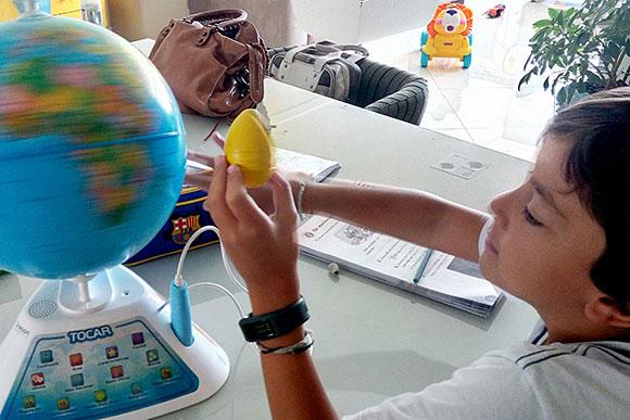 Esses dias Gabriel estava estudando o sistema solar. Eu peguei laranjas, bexiga, uma lanterna, bolinhas e um globo. E assim, juntos, descobrimos a rotação, a translação, as estações do ano, o dia e a noite.