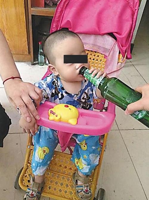 A imagem mostra um bebê de 1 no e meio tomando cerveja em uma garrafa de vidro. O menino, identificado como Tangtang, não para de beber até acabar com a garrafa toda, de acordo com o que foi mostrado pela reportagem. Em apenas um gole, a criança bebe metade da garrafa.