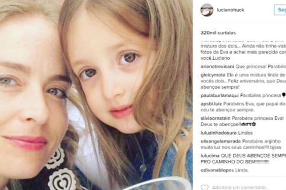 Huck postou foto onde Eva aparece ao lado da mãe: “É tanto amor em uma foto só, que nem sei. Hoje é aniversário da nossa princesa. Estas duas mandam mais em mim que eu mesmo. Parabéns, Eva! Parabéns nossa filha amada! Mulheres da minha vida. 4 anos. Dando valor. Família. Parabéns, Eva”.