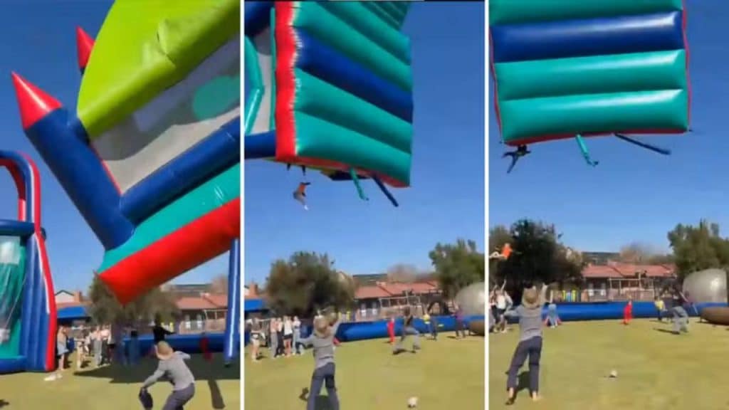 Uma festa escolar, que tinha tudo para ser uma tarde divertida e cheia de risadas, terminou em susto e correria em Krugersdorp, na África do Sul. Durante um evento de arrecadação de fundos na escola primária Laerskool Protearif, um castelo inflável foi lançado pelos ares por uma rajada de vento, e o pior: com crianças dentro!