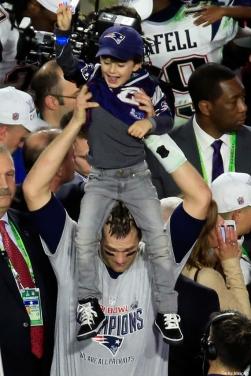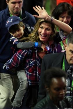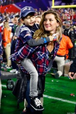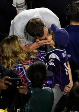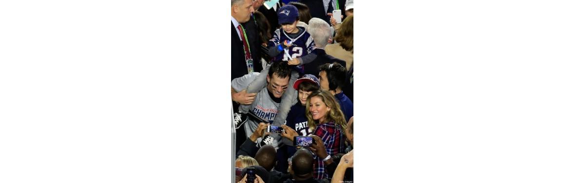 Brady fez o New England Patriots vencer o Seattle Seahawks por 28 a 24, foi eleito o melhor da partida e, de quebra, ganhou um beijão da mulher, Gisele Bündchen, o carinho dos filhos e dos fãs também. A übermodel publicou a imagem do beijo nas redes sociais, e escreveu: