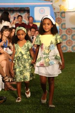 Uma marca nordestina, Aire, foi a terceira a desfilar: roupas leves e coloridas tomaram conta do evento ao som de um forró delicioso na quarta-feira, 23. A atriz Fernanda Rodrigues e sua pequena Luisa fizeram companhia às crianças na passarela. Maria e Laura, filhas da Gloria Maria, tomaram gosto pela coisa e desfilaram novamente. Vittório, filho de Adriane Galisteu, também entrou na passarela.