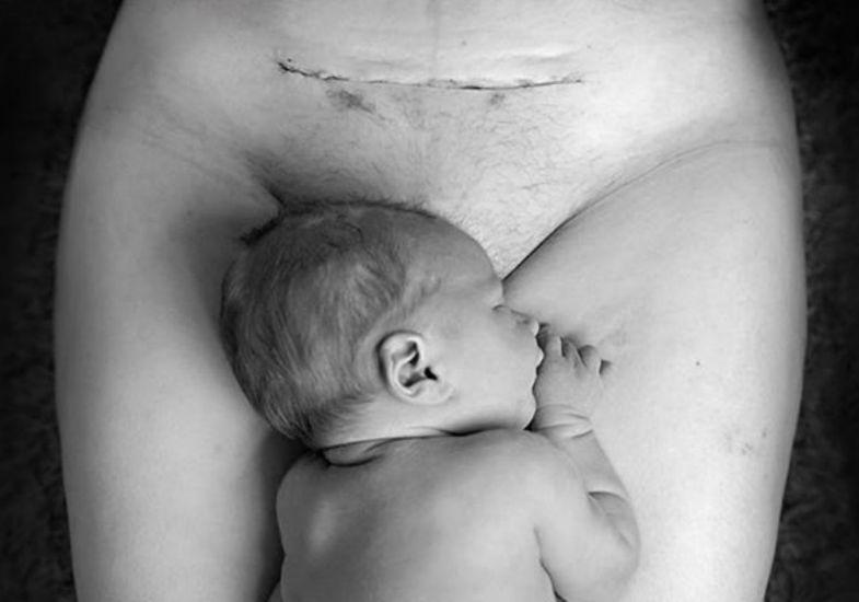 Logo após o nascimento do bebê, a pedido da mãe, Helen fotografou esse momento íntimo exibindo a cicatriz da cesárea para mostrar que o que parecia um monstro de sete cabeças acabou salvando a vida da mãe e do bebê. A imagem é uma prova da coragem da mãe em expor a forma como seu filho nasceu, o que emocionou e inspirou muita gente.