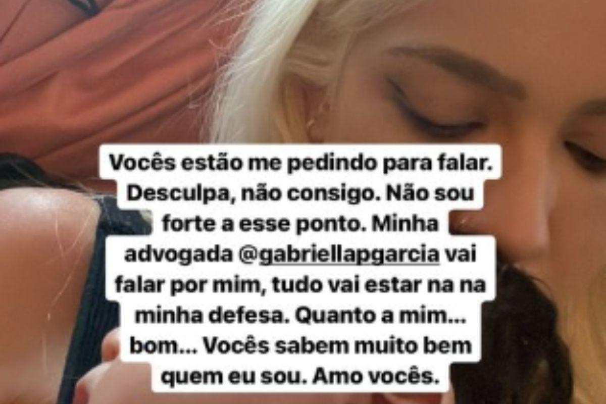 A influencer apareceu em vídeo no stories do Instagram chorando e muito abatida com toda a situação, sem conseguir falar, em foto com a filha no colo disse: “Vocês estão pedindo para eu falar. Desculpa, não consigo. Não sou forte a esse ponto. Minha advogada vai falar por mim, tudo vai estar na minha defesa. Quanto a mim… bom… Vocês sabem muito bem quem eu sou. Amo vocês”, escreveu Karoline.