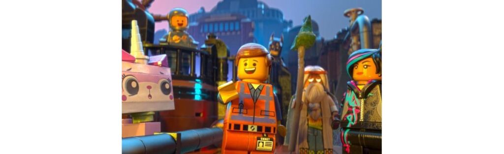 No filme, um mundo de peças Lego montáveis e desmontáveis é controlado pelo “vice-presidente de negócios” e tomado por uma música grudenta e repetitiva, enquanto outros vilões tentam derrubar a cena. Emmet, o protagonista, um trabalhador dessa cidade de peças, encontra um objeto que pode salvar a comunidade Lego. No meio desta confusão toda, aparecem personagens como Batman, Super-Homem, Gandalf, Dumbledore e Chewbacca.