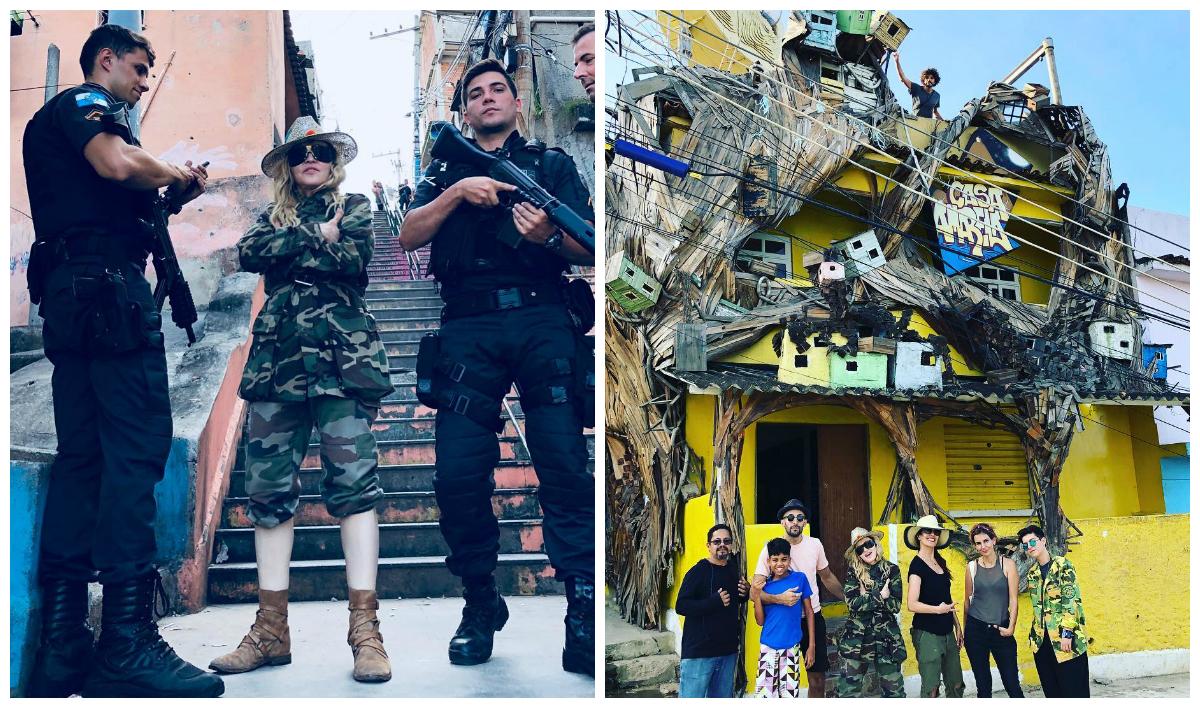 De acordo com o UOL, Madonna ficou cerca de 40 minutos na ONG e não tirou fotos com as pessoas da comunidade. Ela postou uma foto cercada de policias da UPP (Unidade de Polícia Pacificadora) e outras na escultura em forma de lua que fica no teto da Casa Amarela.