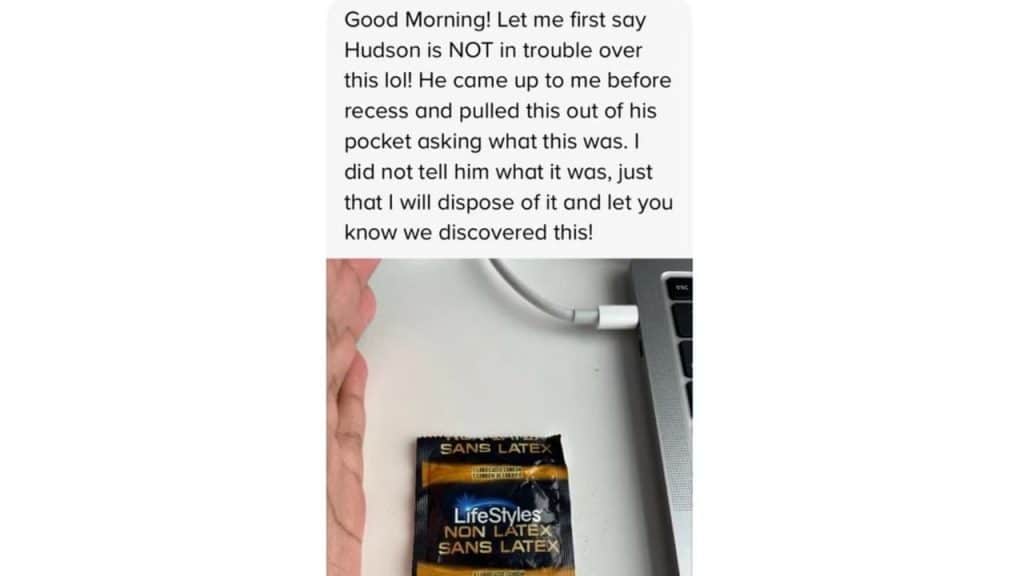 O que o pequeno estava segurando? Uma camisinha ainda na embalagem. E, como se isso não fosse suficiente para causar um rebuliço, a mãe de Hudson, Crystal Starnes, recebeu a mensagem da professora assim que o pequeno deixou a escola. A boa notícia é que Hudson não estava em apuros por causa disso, mas certamente estava despertando a curiosidade por todos os lados.