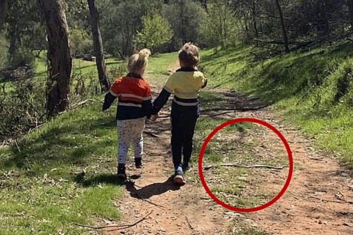 Barry comentou o caso: “Mark me enviou esta foto que sua filha Alanna tirou de seus filhos enquanto eles pulavam uma trilha em sua propriedade no rio Mitta Mitta. Ninguém viu a grande cobra marrom oriental até olhar as fotos mais tarde. A serpente os viu chegando e observou enquanto eles passavam sem saber. Realmente mostra que as cobras não são agressivas e só precisam de respeito”.