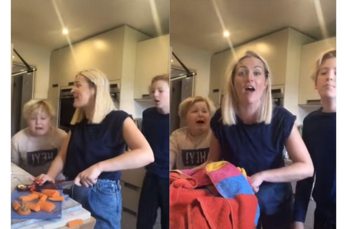 Para piorar a mãe ainda cortou um moldou um pedaço de cenoura e fingiu que era a outra parte (o toco cortado) e como a pegadinha era completa, a mulher jogou uma espécie de sangue falso no pedaço de vegetal. Na hora de chamar pelas crianças, ela bate a faca na tábua e começa a gritar como se realmente havia se machucado.