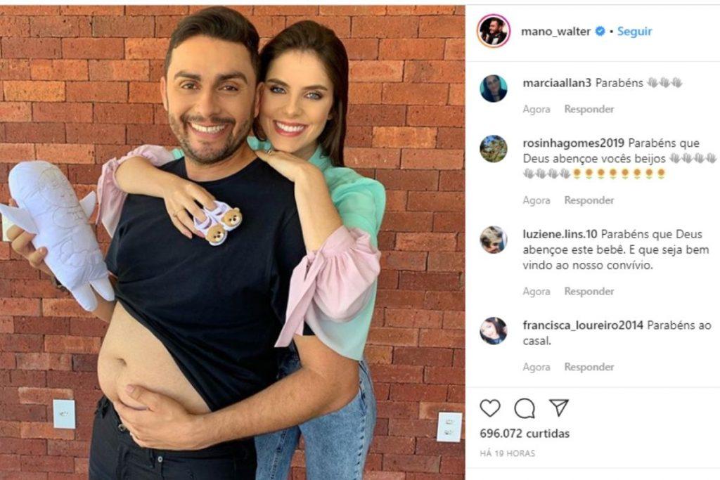 Mano Walter compartilhou a notícia que vai ser pai em uma foto divertida mostrando a barriga no Instagram e ficou muito emocionado ao saber da gravidez da esposa. “Obrigado meu Deus mais uma benção em minha vida, sempre sonhei em ser pai, logo eu que gosto tanto de crianças. O Senhor me presenteou com essa notícia, por isso só quero agradecer ao meu bom Deus e compartilhar com todos vocês a minha felicidade! Serão os 9 meses mais longos da minha vida. Te amo minha buchudinha”, escreveu ele na legenda.