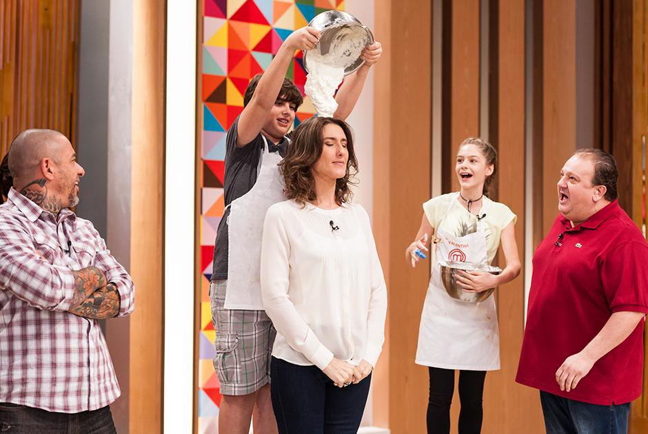 A prova relâmpago que veio em seguida foi uma das mais divertidas até agora: três das crianças, escolhidas por Sofia, tinham que bater chantilly até ficar no ponto certo. Como saber o ponto? Eles iriam virar a tigela na cabeça dos jurados com a missão de não lambuzar ninguém de açúcar e creme de leite! Paolla Carosella e Henrique Fogaça não deram sorte: Lorenzo e Ivana não conseguiram o ponto certo e acabaram sujando os chefs. Valentina se deu bem e Jacquin saiu limpinho (até todo mundo começar a fazer uma guerra com chantilly!).