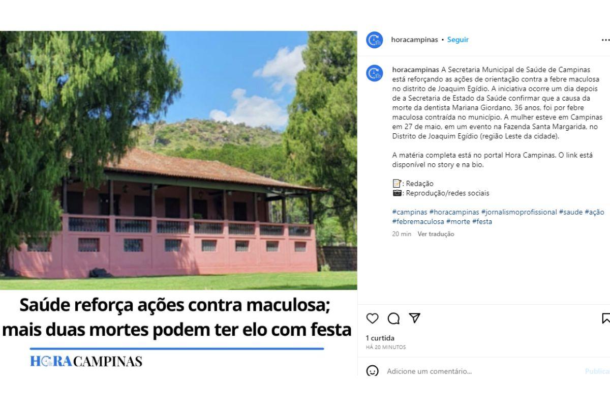A primeira vítima da doença esteve em Campinas em 27 de maio, participando do mesmo evento. O namorado de Mariana, Douglas Pereira Costa, piloto de 42 anos, residente de Jundiaí, também esteve no mesmo local, e veio a óbito em seguida com sintomas semelhantes. De acordo com a Secretaria Municipal de Saúde de Campinas, a terceira vítima de Hortolândia também esteve presente no mesmo evento que Mariana e seu namorado.