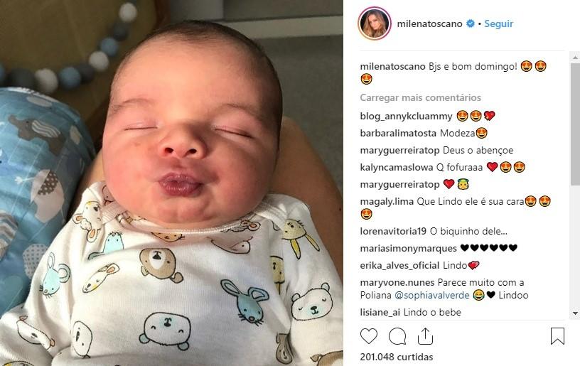 A atriz Milena Toscano, que é mãe de primeira viagem, deixou seus seguidores apaixonados por João Pedro na tarde do último domingo (23) ao publicar uma foto do menino, de apenas 6 dias, fazendo bico. “Beijos e bom domingo”, ela escreveu na legenda de seu post no Instagram.