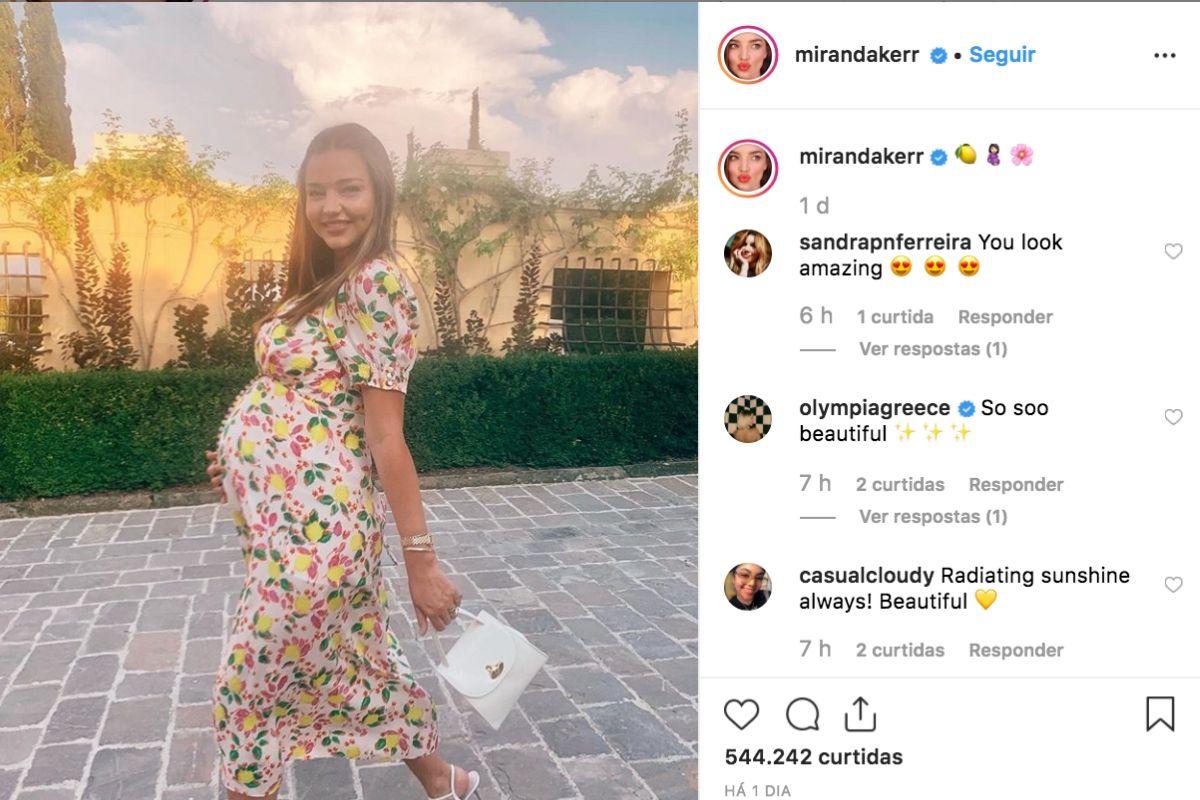 A foto que já conta com mais de 500 mil curtidas, mostra a modelo bem sorridente com uma barriga enorme, usando um vestido floral e salto alto.”Você está radiante” e “Que linda!” foram alguns dos comentários que os fãs deixaram em sua publicação.