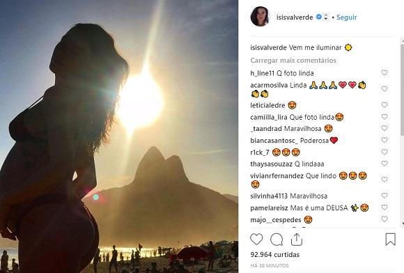 Aguenta coração! Aos 9 meses de gravidez, a atriz Isis Valverde compartilhou com seus seguidores do Instagram foto mostrando o barrigão. De biquíni e na praia, ela não escondeu a ansiedade em conhecer o rostinho de Rael: “Vem me iluminar”, escreveu na legenda.