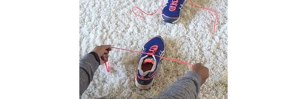 Até agora, o vídeo já teve mais de 6 milhões de visualizações. Esse é um método com três passos, ele envolve dois nós e as “orelhas de coelho”. Simples assim! O vídeo está em inglês, mas você pode copiar a imagem sem problema nenhum. Para comprovar a eficácia do método, Kirsten coloca o filho dela para tentar no vídeo e ele consegue, mesmo fazendo aquilo pela segunda vez na vida.