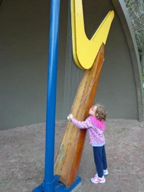 Descobrimos esse parque por acaso, quando tentávamos visitar o Parque do Carmo, no fim de semana em que as cerejeiras floresciam. Pegamos um trânsito maluco e decidimos voltar pra casa, mas, ao dar meia volta, chegamos ao Sesc Itaquera. Caminhando pelo Sesc, vimos alguns instrumentos gigantes e ficamos curiosos. Logo percebemos que era uma espécie de playground musical!