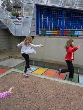 Minhas filhas amaram o balanço-matraca (você gira e ele faz barulho) e o piano de foles (toca conforme você pisa nas teclas), além dos dirvesos escorregadores e xilofones. No dia em que fomos ao parque, havia monitores fazendo uma espécie de gincana. De vez em quando há shows musicais. Gente como Hermeto Paschoal e Uakti já se apresentaram lá. Em dia de chuva , o parque fecha, pois os brinquedos ficam escorregadios. No dia em que fomos lá, aproveitamos a hora da garoa para almoçar no restaurante do Sesc. Aliás, o Sesc Itaquera tem um espaço verde imenso, povoado por esculturas, além de um café bem simpático, onde às vezes também há apresentações musicais.